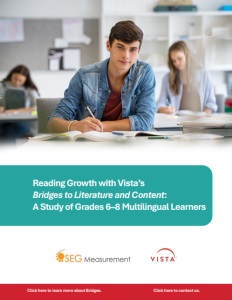 Reading Growth with Vista’s Bridges to Literature and Content: A Study of Grades 6–8 Multilingual Learners Click here to learn more about Bridges. Click here to contact us.