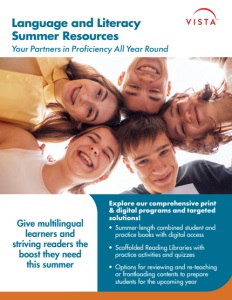 Language and Literacy Summer Resources Explore our comprehensive print & digital programs and targeted solutions! • Summer-length combined student and practice books with digital access • Scaffolded Reading Libraries with practice activities and quizzes • Options for reviewing and re-teaching or frontloading contents to prepare students for the upcoming year Give multilingual learners and striving readers the boost they need this summer Your Partners in Proficiency All Year Round